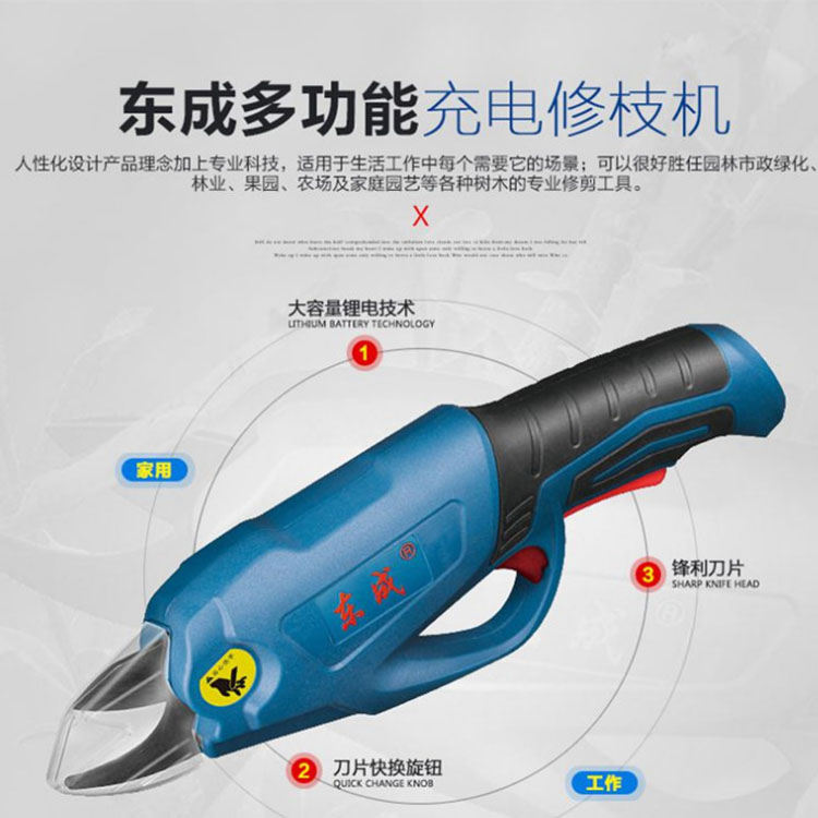 東成充電式修枝剪DCYD14(B型)剪切速度快,直徑大、雙電池續航持久。