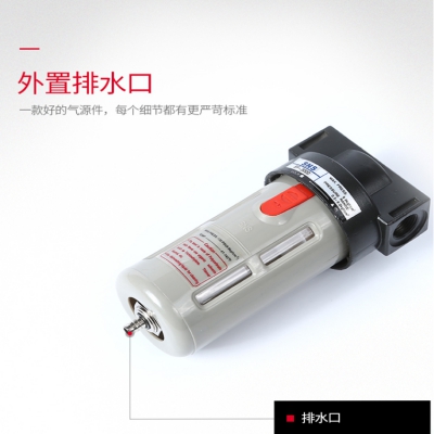 SNS神馳氣動(dòng)空氣過濾器外置排水口,更方便有效排出液體,合金材料更加耐用。