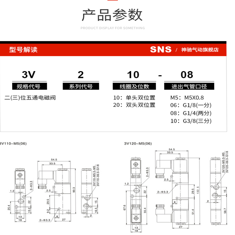 SNS神馳氣動電磁閥換向閥AC220V電閥氣閥DC24V電磁控制閥