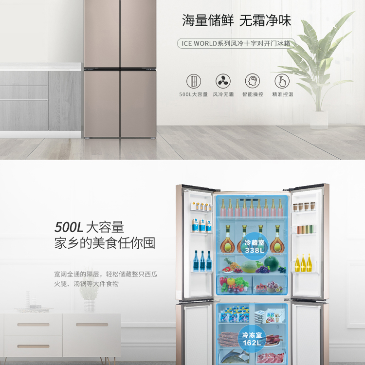 格蘭仕 500L風冷十字對開門冰箱BCD-500WTE