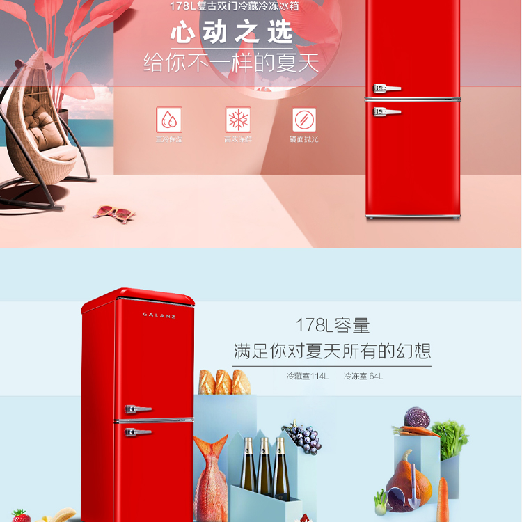 格蘭仕 178L 復古雙門冷藏冷凍冰箱BCD-178F