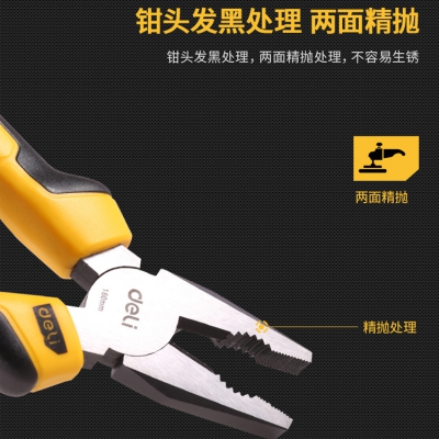 得力高碳鋼老虎鉗電工鋼絲鉗工業級斷線平口鉗多功能鉗子6英寸