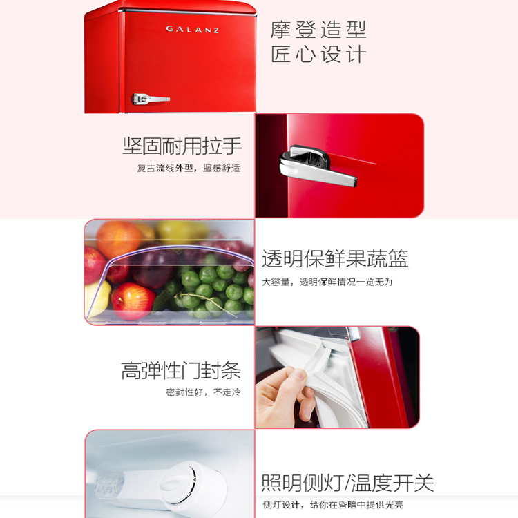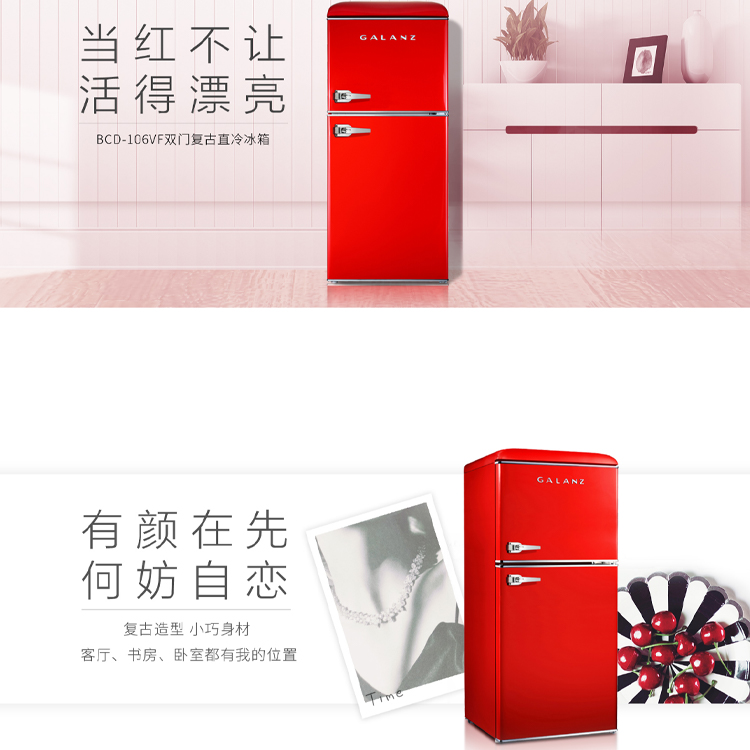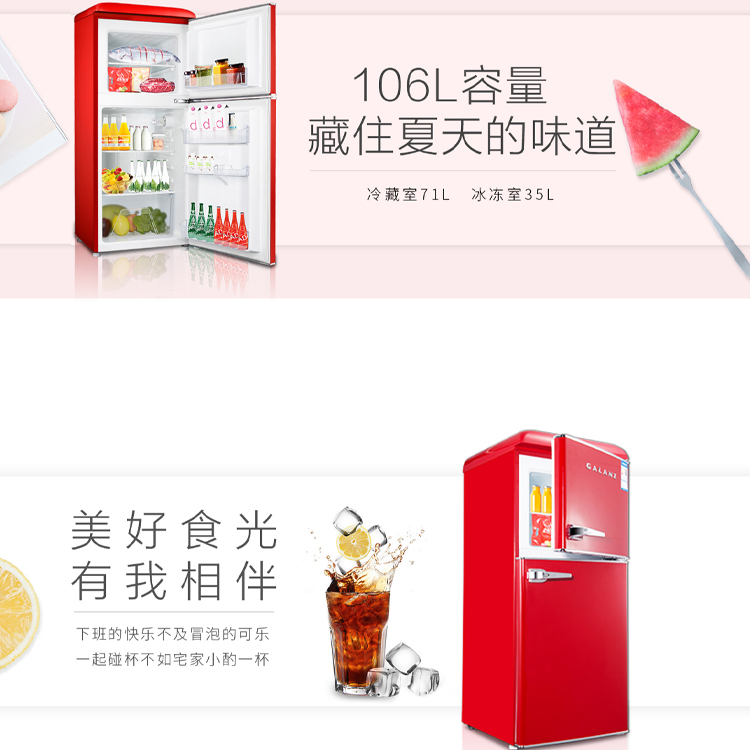 格蘭仕 106L復古雙門冷藏冷凍冰箱BCD-106VF