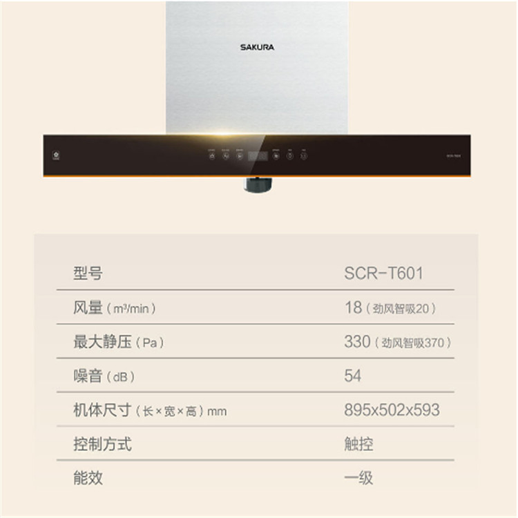 櫻花SCR-T601 雙炫風(fēng)2.0吸油煙機(jī)頂吸式抽油煙機(jī)大吸力家用吸油煙機(jī)性能參數(shù)