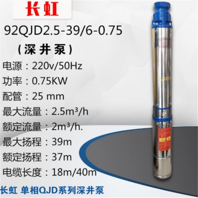 長(zhǎng)虹 單相QJD系列深井泵力強(qiáng)勁、高效率、高強(qiáng)度、高揚(yáng)程、壽命長(zhǎng)、安裝便捷。