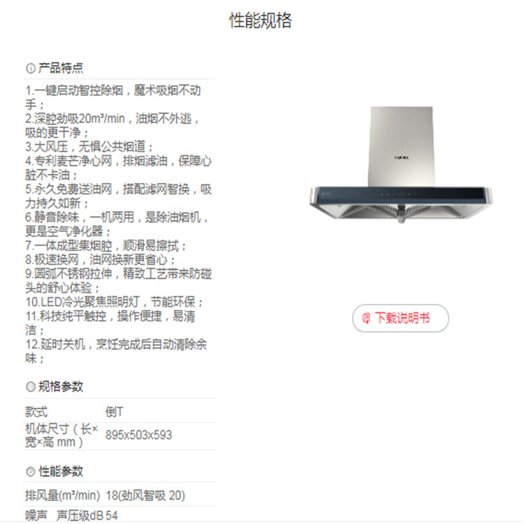 櫻花SCR-3968 雙炫風2.0吸油煙機頂吸式抽油煙機大吸力家用吸油煙機產品參數