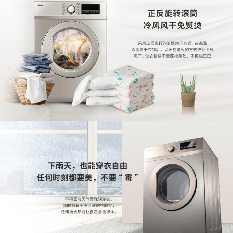 格蘭仕 納米比滾筒干衣機(jī)DV-70T5采用正反旋轉(zhuǎn)滾筒烘干方式,