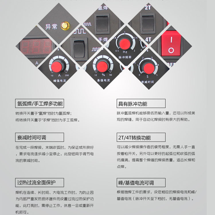 焊機具有脈沖功能 衰減時間可調 電流數字化顯示