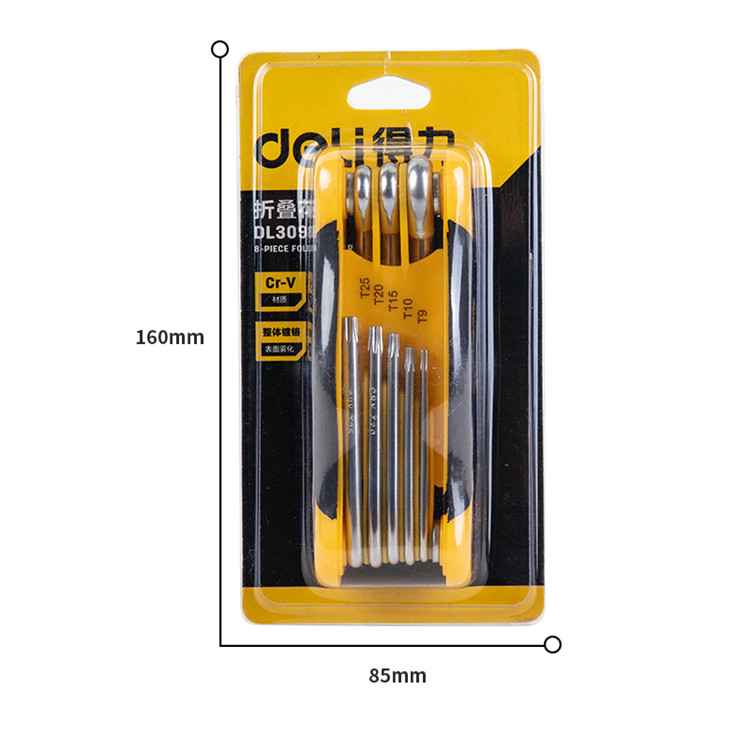 得力折疊內(nèi)六角扳手采用CR-V鉻釩鋼材質(zhì),經(jīng)久耐用,方便攜帶