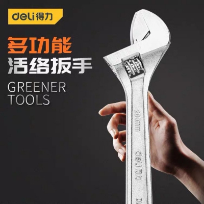 得力多功能活動扳手光柄開口活絡(luò)扳手激光刻度操作省力活扳手