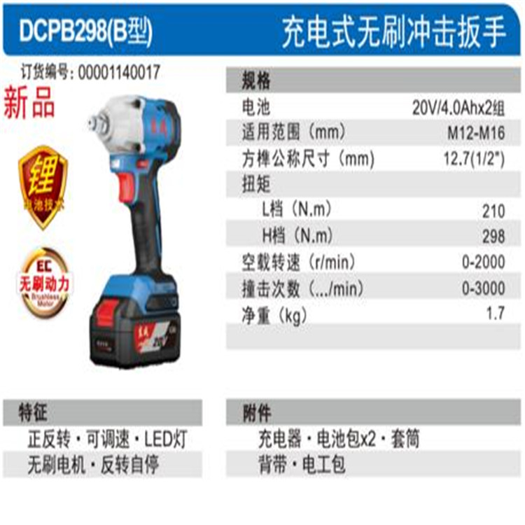 東成充電式無刷沖擊扳手DCPB298(B型)