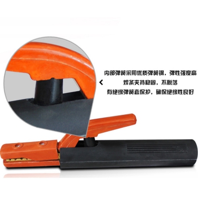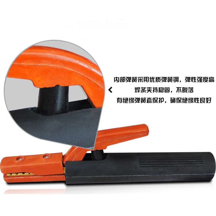 焊機配件內(nèi)部彈簧采用優(yōu)質(zhì)彈簧鋼,彈性強度高,焊條夾持穩(wěn)固,不脫落