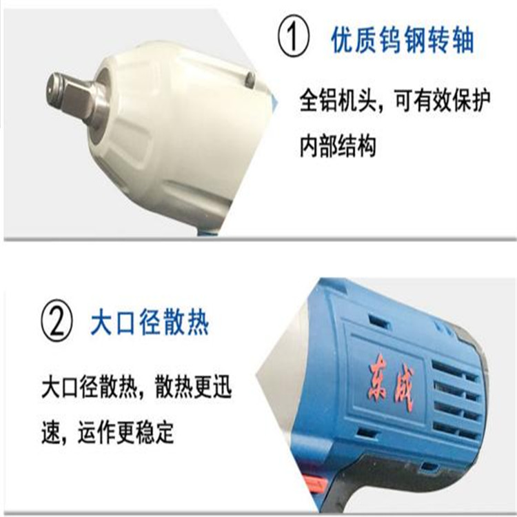 東成充電式沖擊扳手采用優質鎢鋼鉆頭,大口徑散熱設計,散熱更迅速,防滑手柄,更貼合手掌
