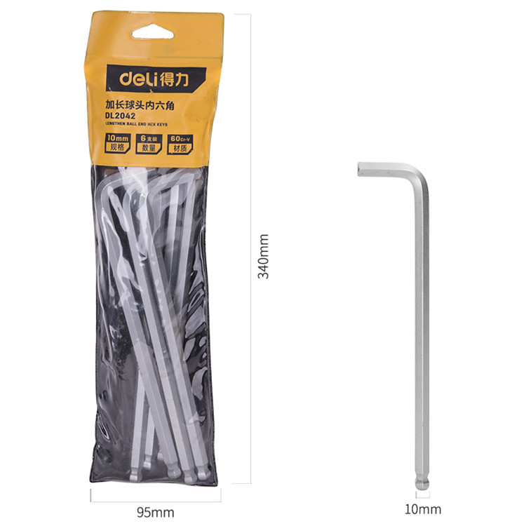 得力霧面S2加長球頭內六角扳手采用S2鋼材,堅固耐用