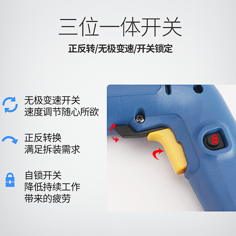 裝配不同批頭與套筒,完成多項擰卸螺絲工作。