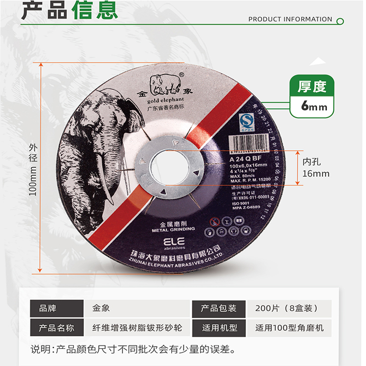 - 型號名稱?[金象]打磨片100*6?整箱200片