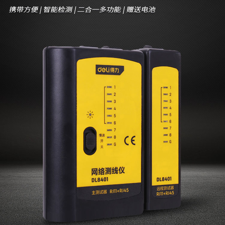 得力多功能網(wǎng)線測試儀電話線測線儀網(wǎng)絡(luò)信號(hào)通斷檢測器工具