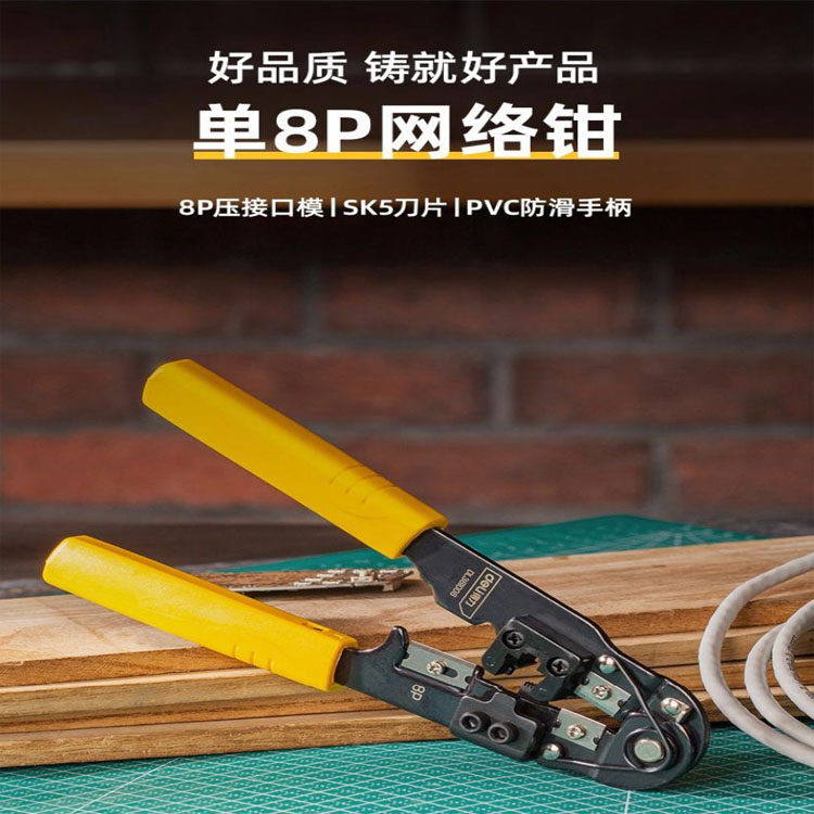 網(wǎng)線鉗采用8P壓接口模,SK5刀片,PVC防滑手柄