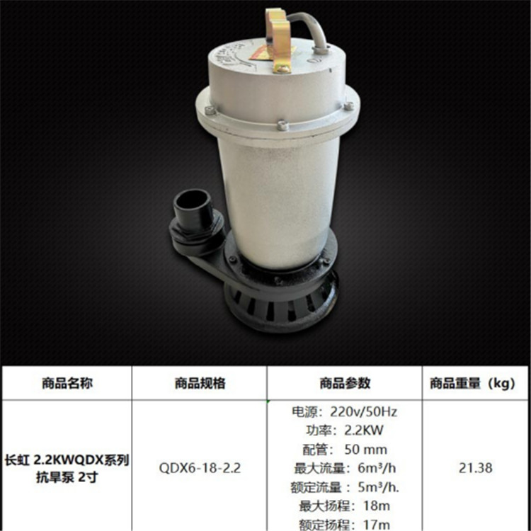 長(zhǎng)虹2.2KW QDX系列抗旱泵2寸動(dòng)力強(qiáng)勁、性能穩(wěn)定、品質(zhì)認(rèn)證。