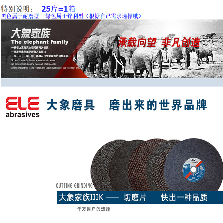 珠海大象切割片砂輪片磨片品質保證,更加耐用。- 型號名稱?黑色1片