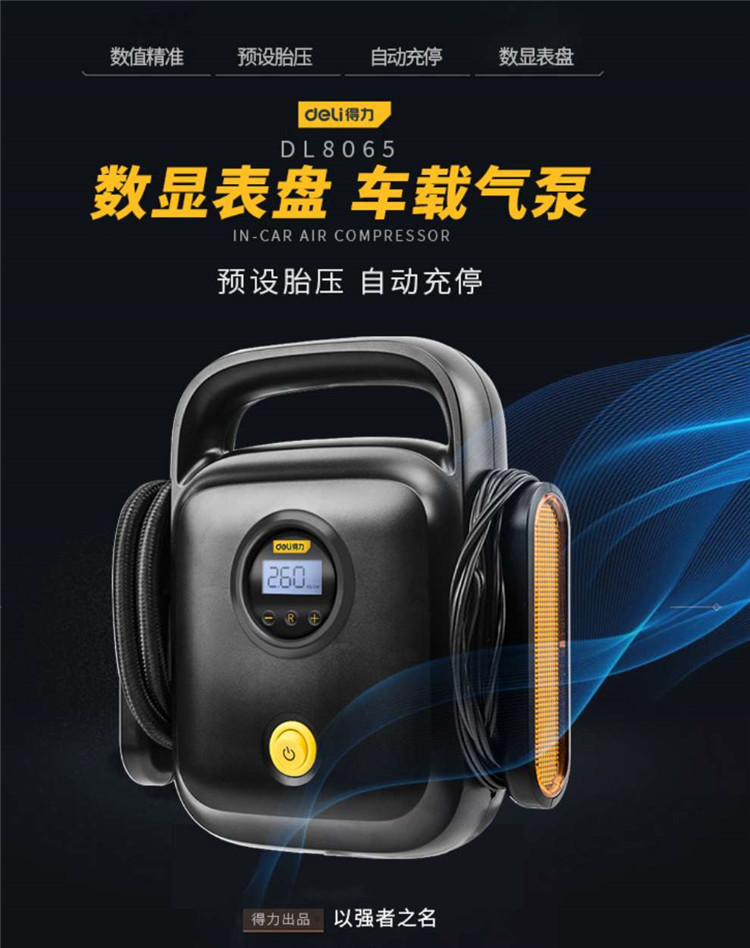 得力(deli) 預設胎壓數顯車載充氣泵汽車輪胎12v便攜式電動打氣泵DL8065黑