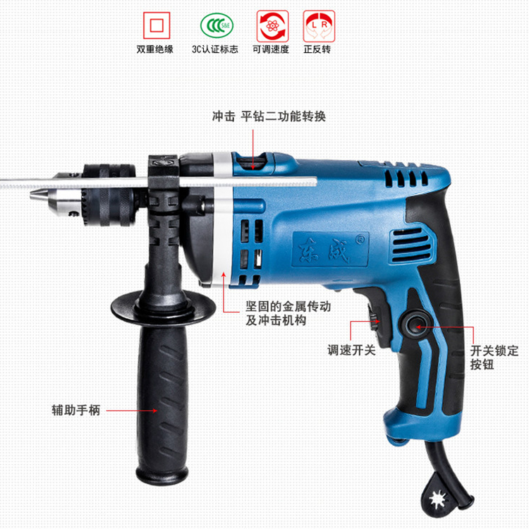 功能轉(zhuǎn)化開關(guān),平鉆功能和沖擊鉆功能輕松轉(zhuǎn)換。