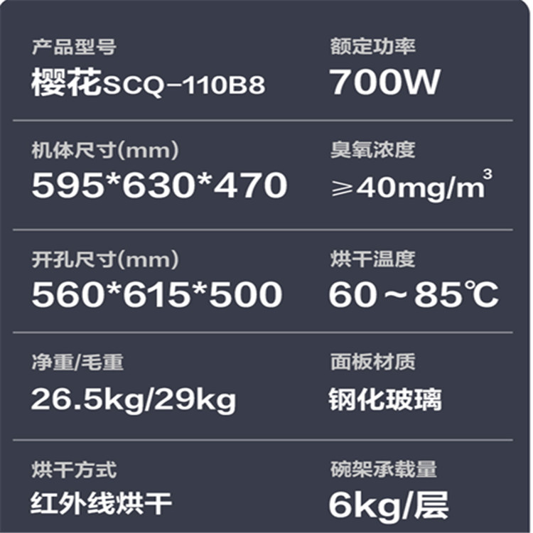 櫻花SCQ-110B8大容量消毒柜嵌入式消毒柜產品參數