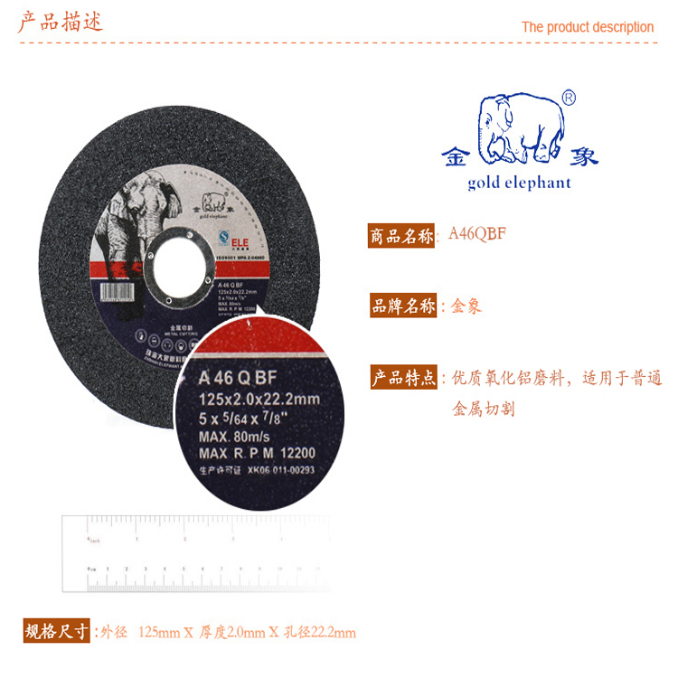珠海大象 金象125x1.2x22.2mm超薄切割片 切割片 砂輪切割片