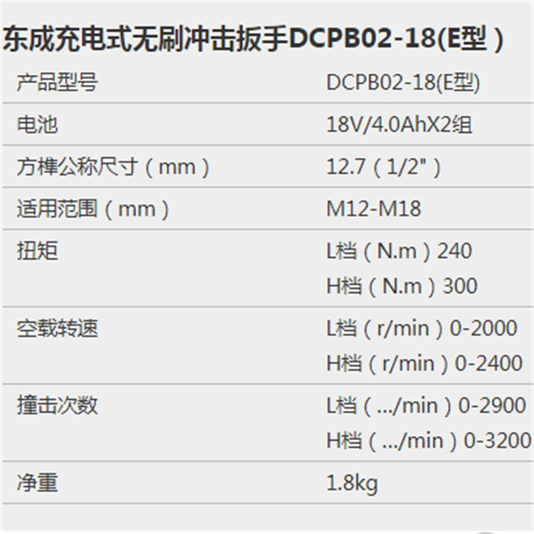 東成充電式無刷沖擊扳手DCPB02-18(E型)