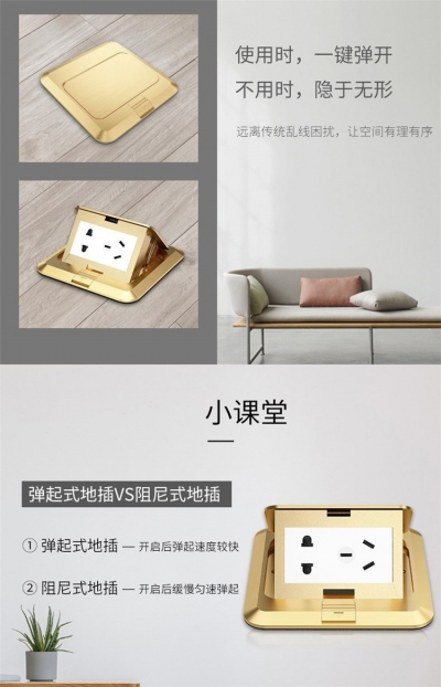 深圳施瑯格地插座二三插全銅快彈隱藏式五孔防水阻尼彈起式地面地板家用插座金色