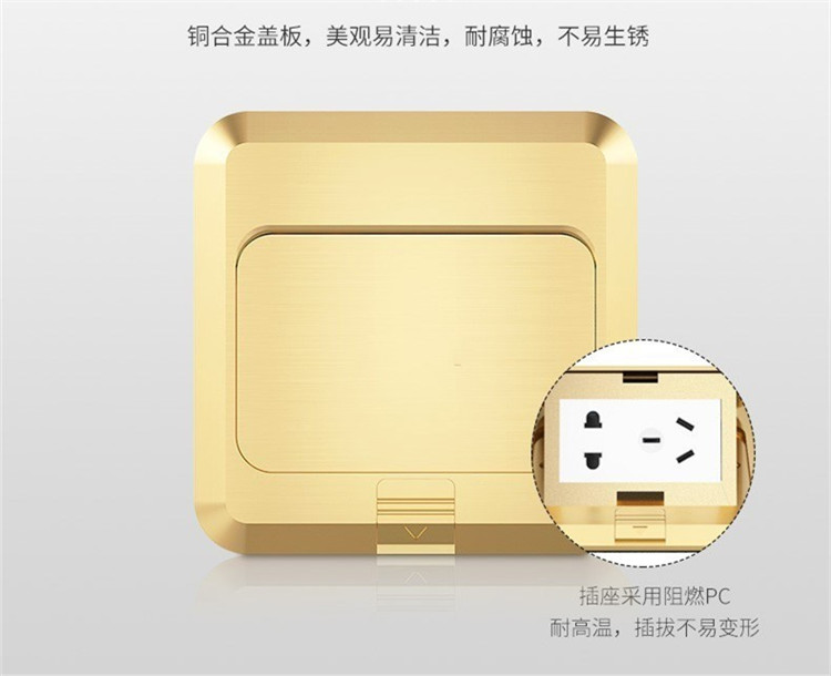 施瑯格二三插全銅快彈隱藏式地插座銅合金蓋板,一擦即凈,耐腐蝕,不易生銹