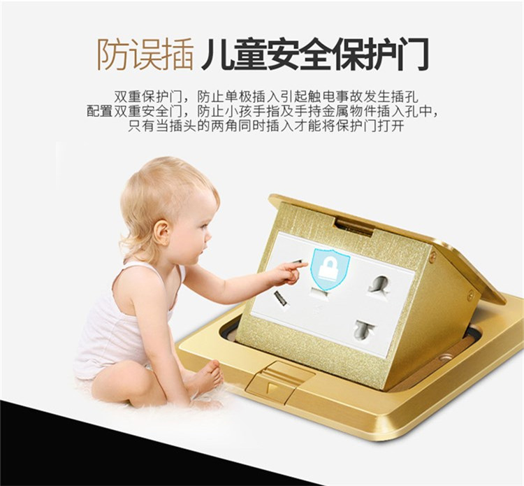 五孔全銅快彈隱藏式地插配置雙重安全門,兒童安全保護門