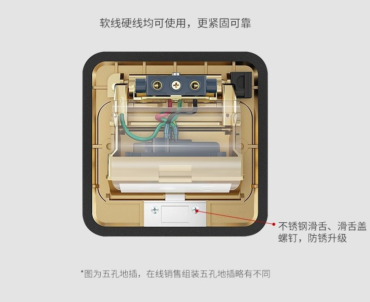 施瑯格五孔地插座銅柱接線,布線合理,更緊固可靠