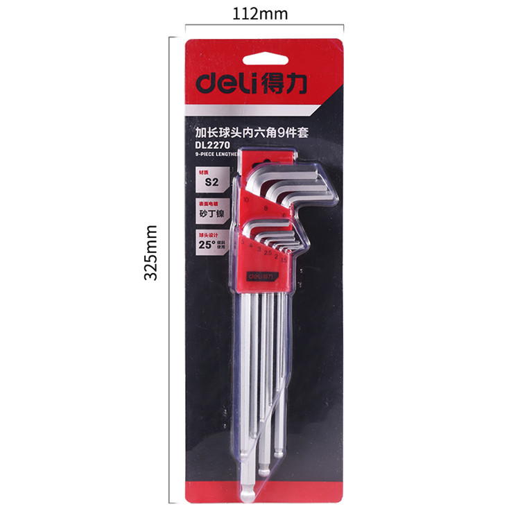 得力S2長型球頭內六角表面砂丁鎳處理,有效防止反光