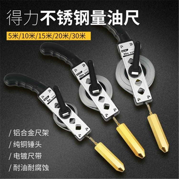 得力量油尺尺帶采用鋼材精工制作,表面電鍍,耐磨防銹