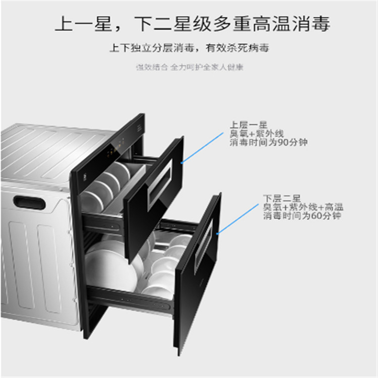 櫻花ZTD100-C01消毒柜嵌入式智能消毒柜上下獨立分層消毒,有效殺死病毒