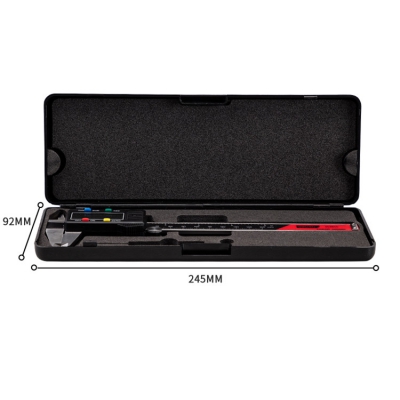 得力數顯游標卡尺按鍵操作、不銹鋼材質,加硬外殼,尺身刻度、清晰可見