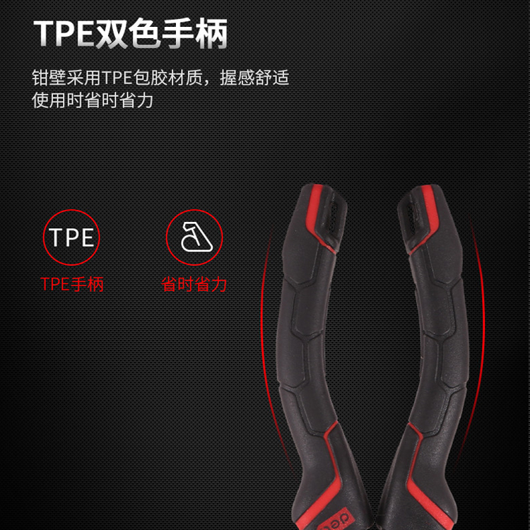 尖嘴鉗鉗壁采用TPE包膠材質(zhì),握感舒適