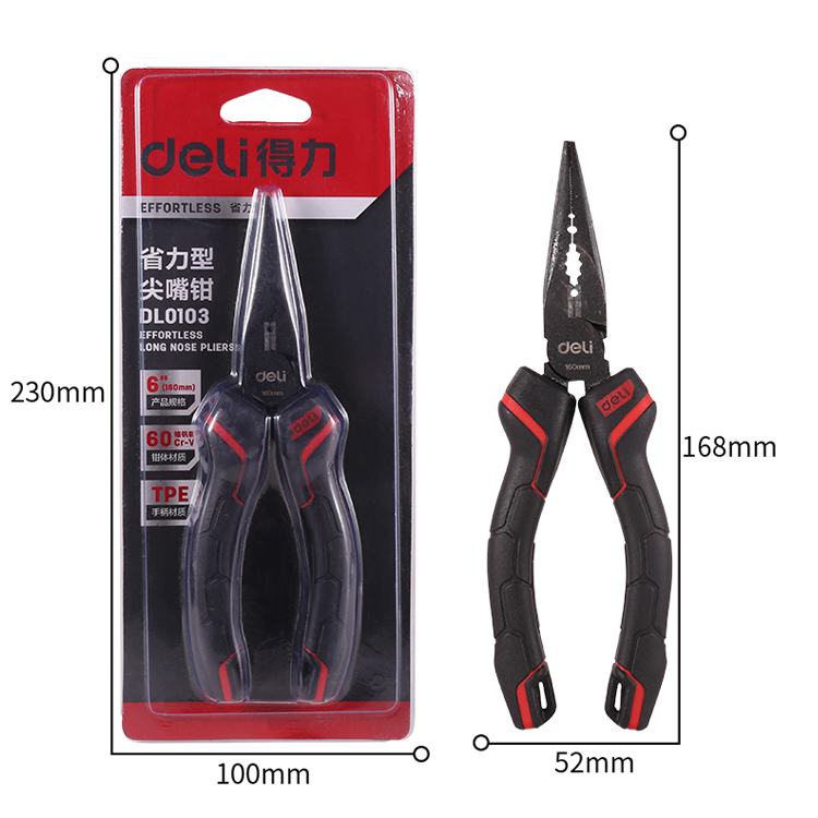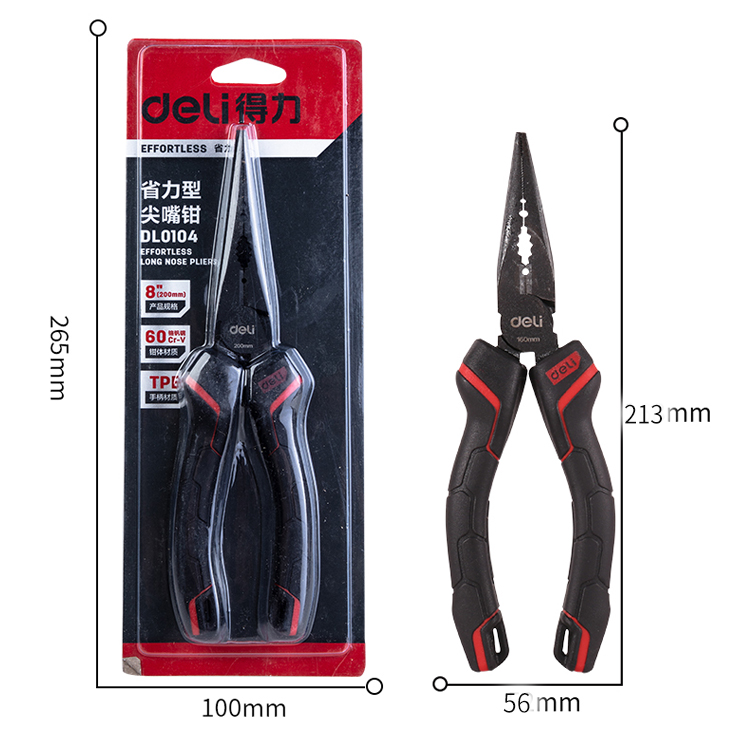 寧波得力省力型尖嘴鉗DL0103/04鉻釩鋼長嘴鉗夾持工具