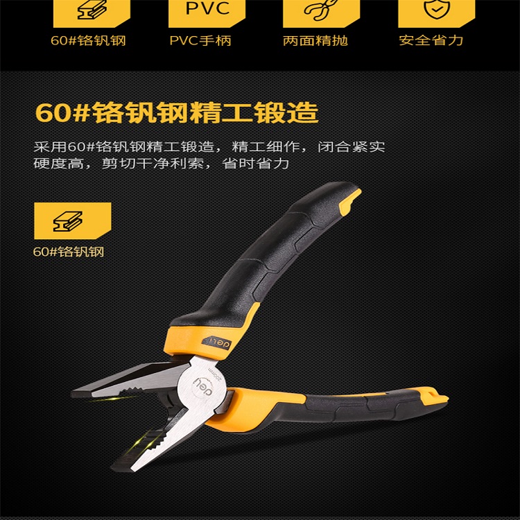 得力鋼絲鉗6寸7寸8寸省力鉻釩鋼電工老虎鉗多功能手動鋼絲鉗DL2008ZDL2007ZDL2006z