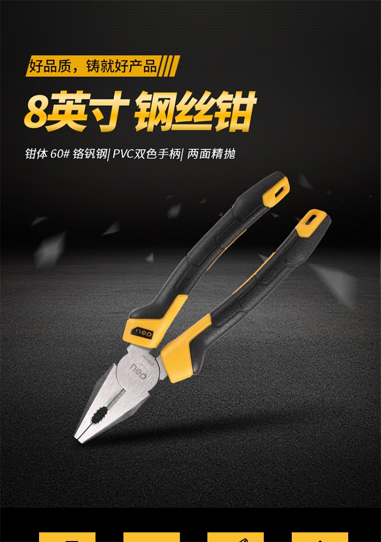 鋼絲鉗采用60#鉻釩鋼精工鍛造,鉗頭發黑處理,兩面精拋