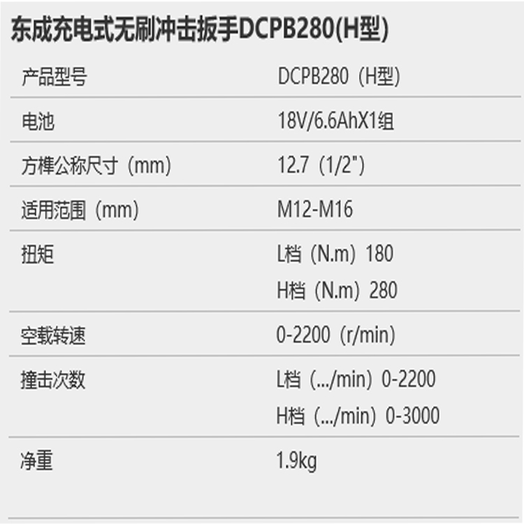 東成充電式無(wú)刷沖擊扳手DCPB280可提高工作效率,