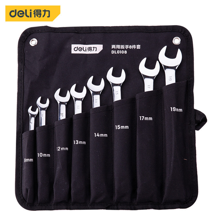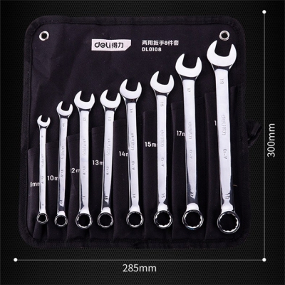 得力鏡面兩用扳手8件套DL0108工具套裝