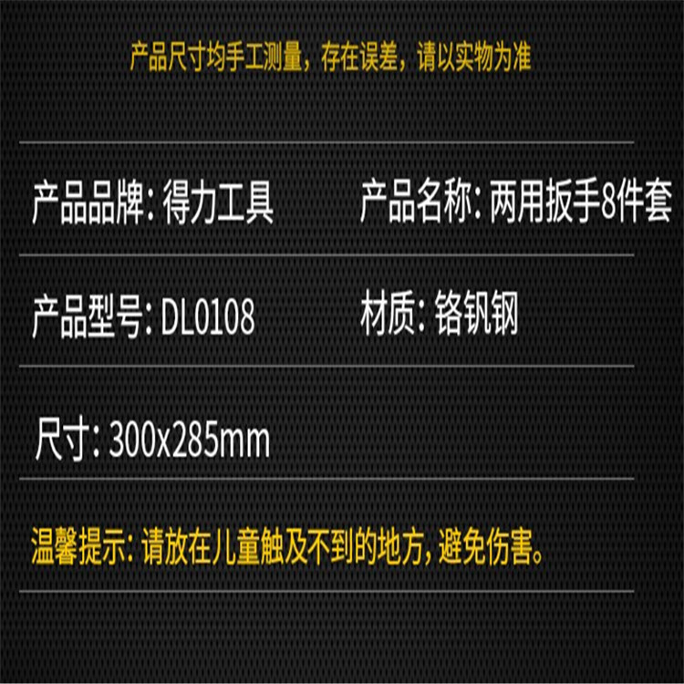 得力扳手鏡面兩用扳手8件套DL0108工具套裝參數