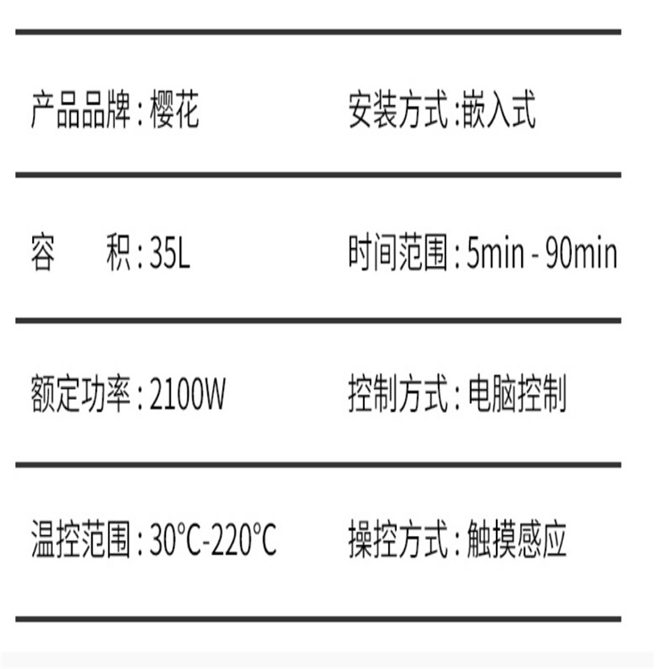 櫻花SCE-35CB02蒸烤一體機(jī)蒸烤箱嵌入式蒸烤箱大容量蒸箱烤箱三合一產(chǎn)品參數(shù)