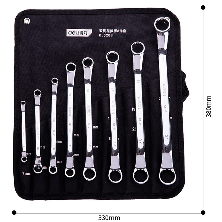 得力鏡面雙梅花扳手8件套工具套裝兩用五金汽修呆板手子加長扳手組套DL0208