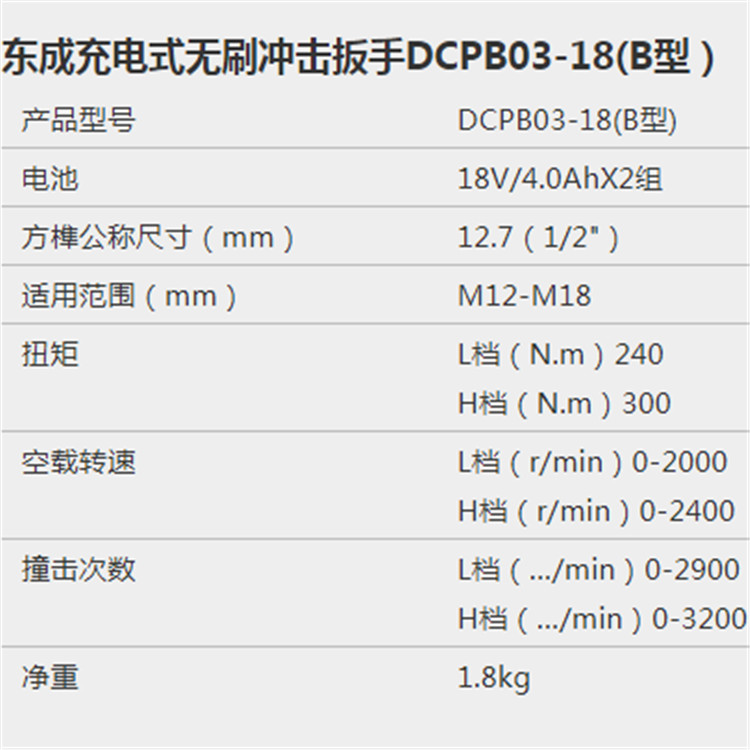 東成充電式無刷沖擊扳手DCPB03-18(B型)