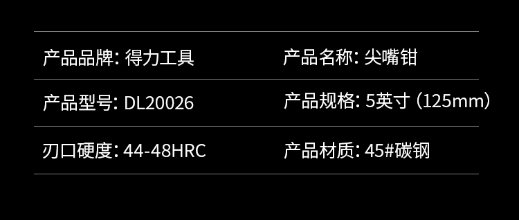 尖嘴鉗DL20026 5英寸刃口感應淬火刃彈簧設計