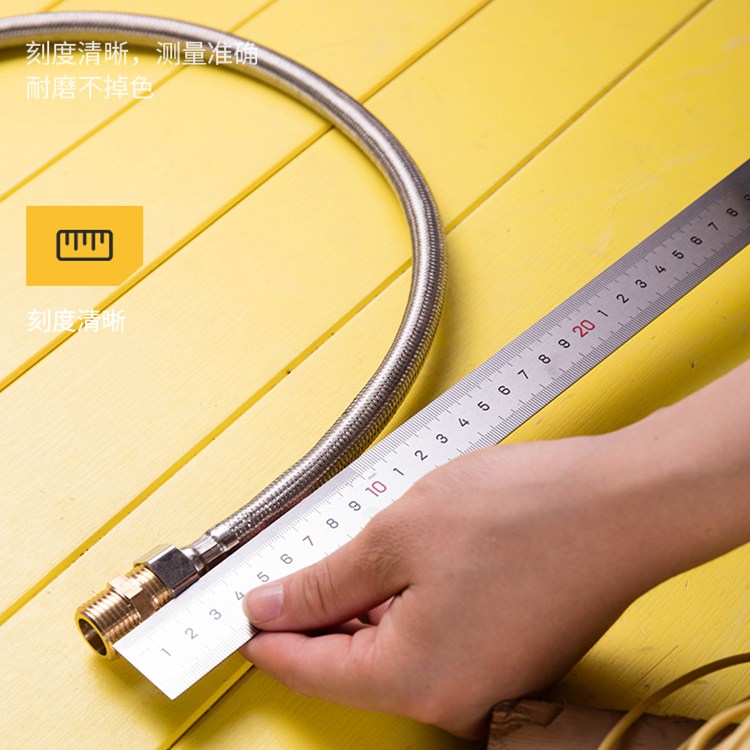鋼直尺表面啞光處理,不易反光,刻度清晰,測量準確,耐磨不掉色。