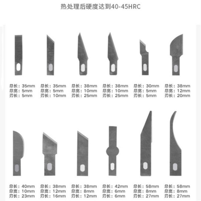 得力雕刻刀組套裝刀頭采用SK5彈簧鋼,經熱處理后硬度達40-45HRC